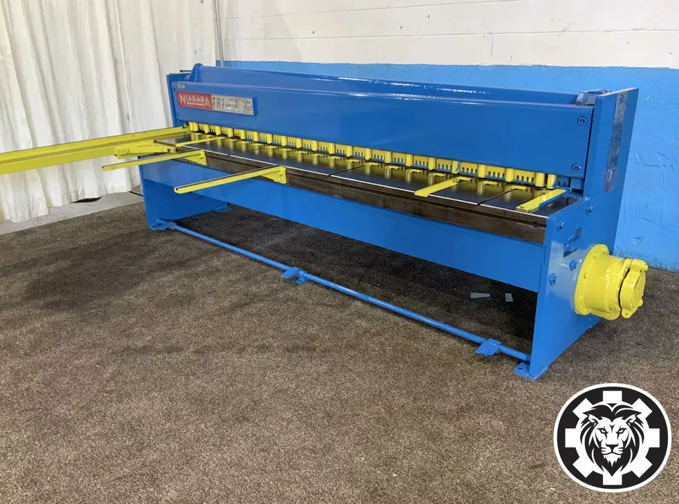 NIAGARA 1R-10-10GA Power Squaring Shears in used condition, featuring a max gauge capacity of 10 and a 120" blade length. Ideal for precise sheet metal work with reliable performance. Equipped with original NIAGARA components.