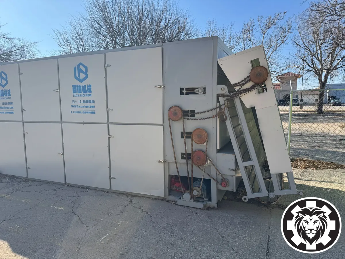 BAIXIN Herb Dryer Machine. Used commercial dryer ideal for hemp with 200–3,000 kg/h output capacity. Offers a drying time of 0.5–5 hours and temperature range of 40–120°C. Flexible heat sources: coal, wood chips, gas, diesel, propane, electricity.