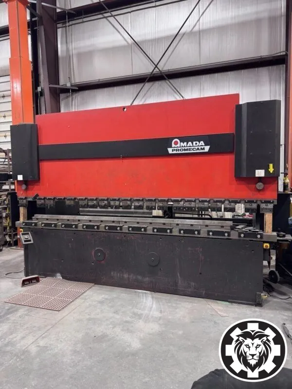 1993 AMADA Promecam HFB 1704, 187 Ton x 13' CNC Press Brake. Features 7-axis control, 5-axis backgauge, 25 HP motor, and tooling. Specs include 148” arm span and 240 IPM approach speed. Compact size, weighing 28,600 lbs, for precision work.