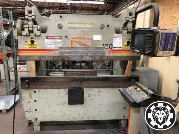 For sale: 1996 ACCURPRESS 7606 CNC Press Brake. Features 60-ton capacity, 6' overall length, 8" stroke, and 3-axis control. Specifications include 24" backgauge travel and 6,000 lbs weight.
