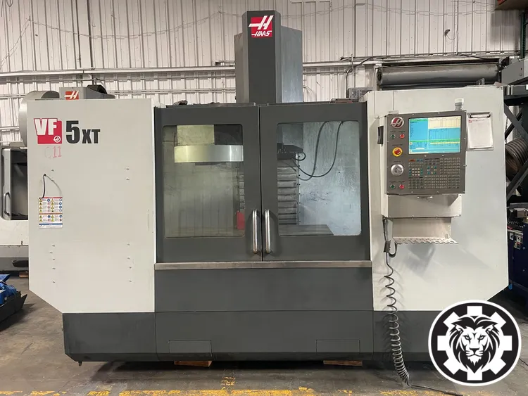 Haas VF-5 VMC, 2014: Ideal for high-speed machining with features like rigid tapping and a chip auger. Offers 50"x26"x25" travels, 20 hp power, and 7,500 RPM. Equipped with a CAT-50 taper and a 20-tool changer for versatile operations.