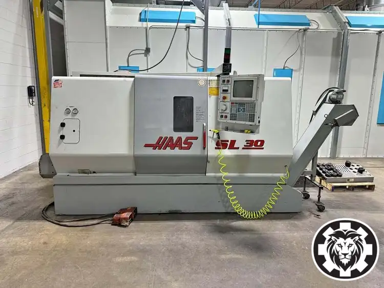 HAAS SL-30T CNC Lathe from 1999. Features a 30" swing, 32" machining length, 10" chuck, 3" bar capacity, and 30 hp power. Max RPM of 3,400 with 17" turning diameter and tailstock included. Ideal for precision machining tasks.