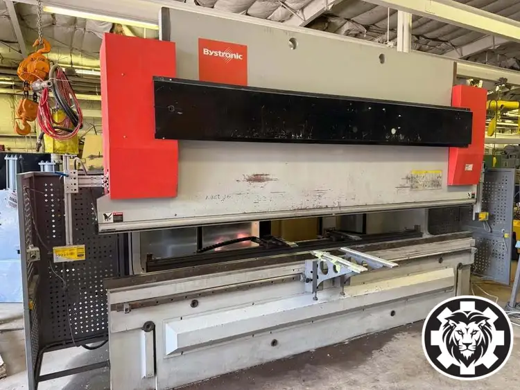 BYSTRONIC XACT 160 used press brake available. 160-ton hydraulic capacity, 4000mm overall length, and 3420mm between housings with a 200mm stroke. Ideal for precision forming and bending tasks.
