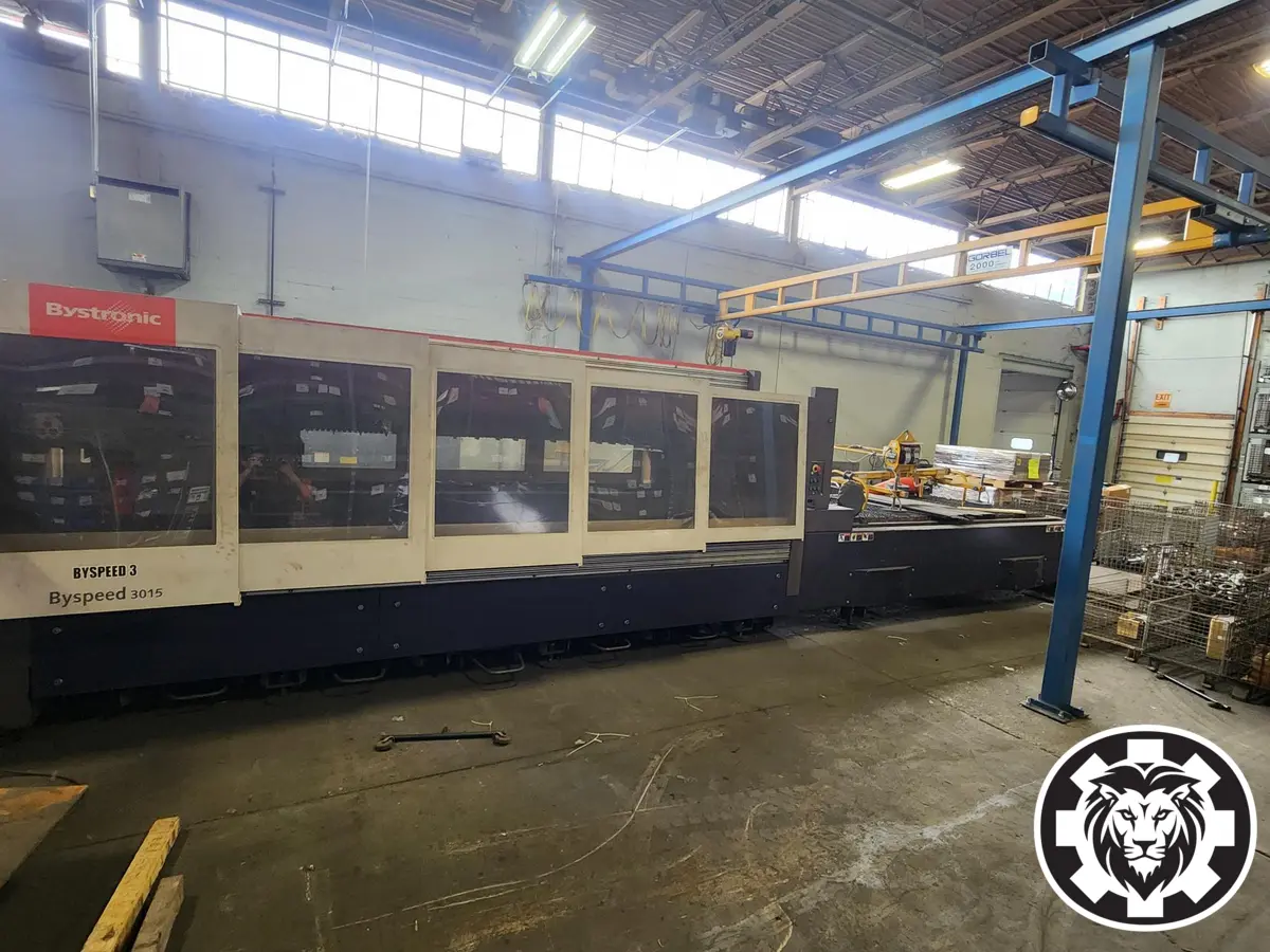 Used BYSTRONIC Byspeed 3015 Laser Cutter, 2007 model. Key specs: 4400W, 60"x120" capacity, 6591 IPM, with X/Y/Z travel of 120"/60"/3.9". Ideal for precision cutting needs.