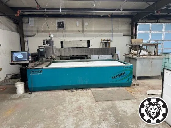 2018 Techni Techjet 3000-X3 Waterjet, 5′ x 10′, featuring a 60K PSI pump and closed-loop chiller. Manufactured by TECHNI WATERJET, this used machine offers precision cutting capabilities for various materials.
