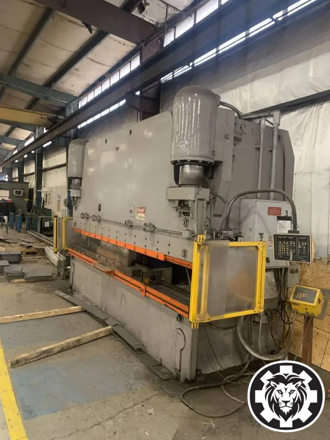 Pacific K400-16 Hydraulic Press Brake available. This used PACIFIC model offers 400-tonnage capacity, 192" overall length, 148.5" between housings, and 12" stroke. Ideal for efficient and precise metal bending tasks.