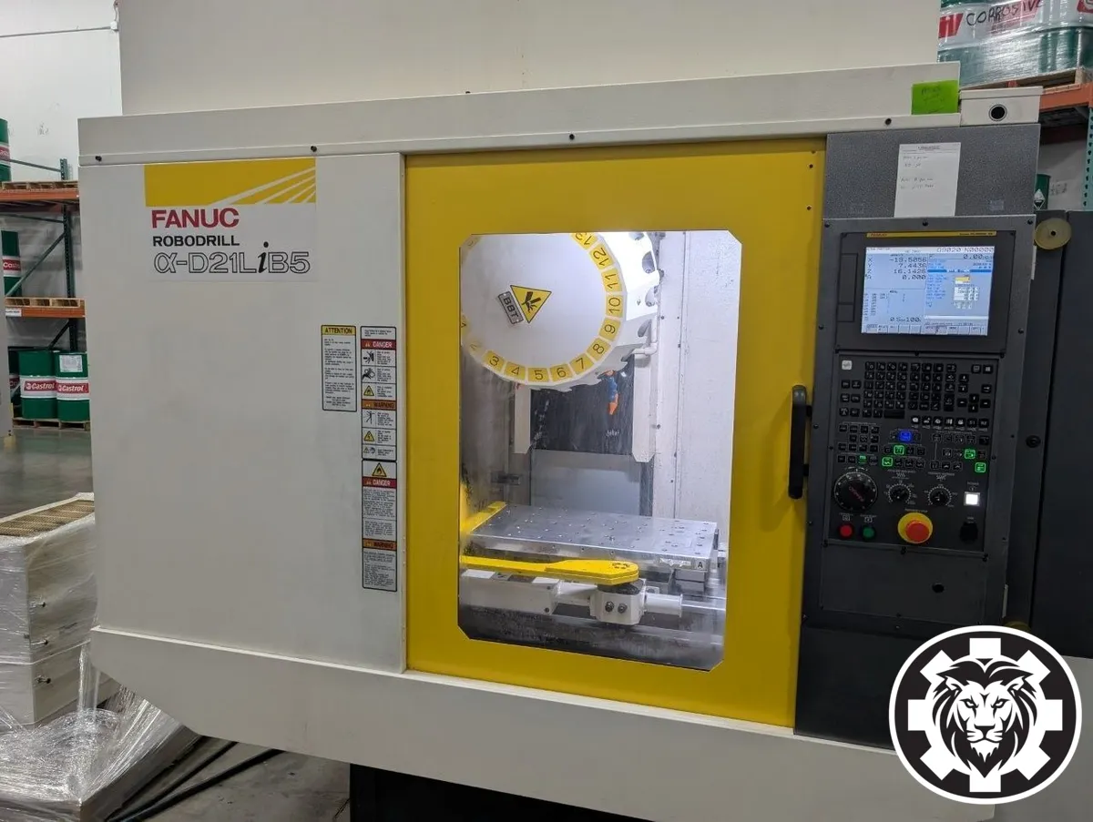 2018 FANUC ROBODRILL ALPHA D21LIB5 used drilling & tapping center available. Specs: X 30", Y 15.5", Z 13", power 33.8kW, RPM 24000, taper BT 30. Ideal for precision tasks.
