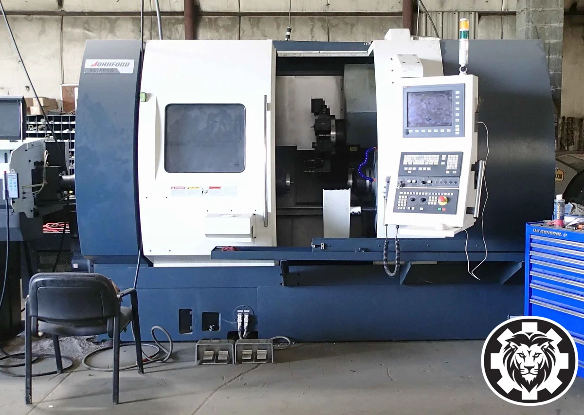 2018 Johnford SL-500A CNC Lathe in used condition. Features: 22.8" swing, 28.0" machining length, 12.0" chuck size, 4.13" bar capacity, 35.0 horsepower, 3500 RPM max, 17.7" turning diameter, with tailstock. No live tooling or sub spindle.