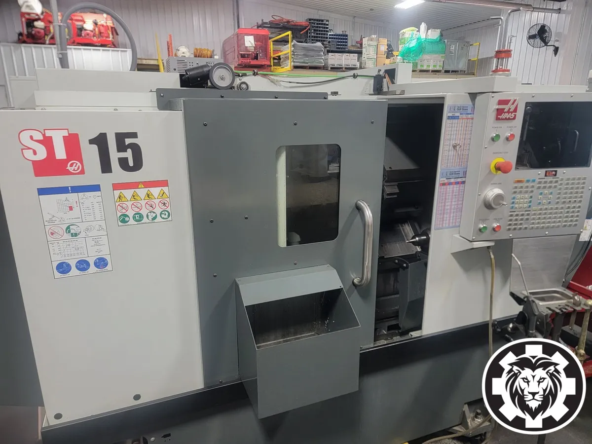 2019 HAAS ST-15 CNC Lathe for sale. Features include 27.0" swing, 16.0" machining length, 8.3" chuck size, 2.5" bar capacity, 20.0 HP, 4000 RPM max, and 14.0" turning diameter. Well-maintained and in good condition.