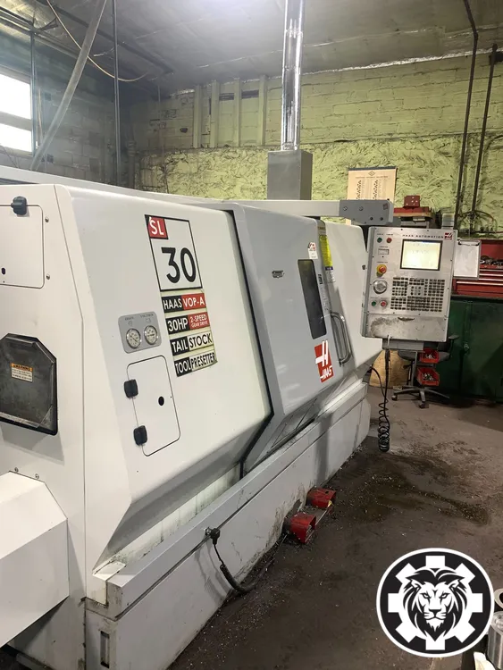 HAAS SL-30T CNC Lathe, 2005. Features 30" swing, 32" machining length, 10" chuck, 3" bar capacity, 30 HP, 3400 RPM max, 17" turning diameter, and tailstock. Ideal for precise machining tasks. Used condition.