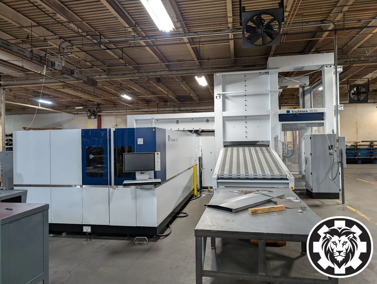 2023 TRUMPF TRULASER 3030 FIBER Laser Cutter, used. Features X: 3000 mm, Y: 1500 mm, Z: 115 mm, 3000 watts, cuts sheets up to 1500 x 3000 mm, 140 IPM. Ideal for precision industrial cutting needs.