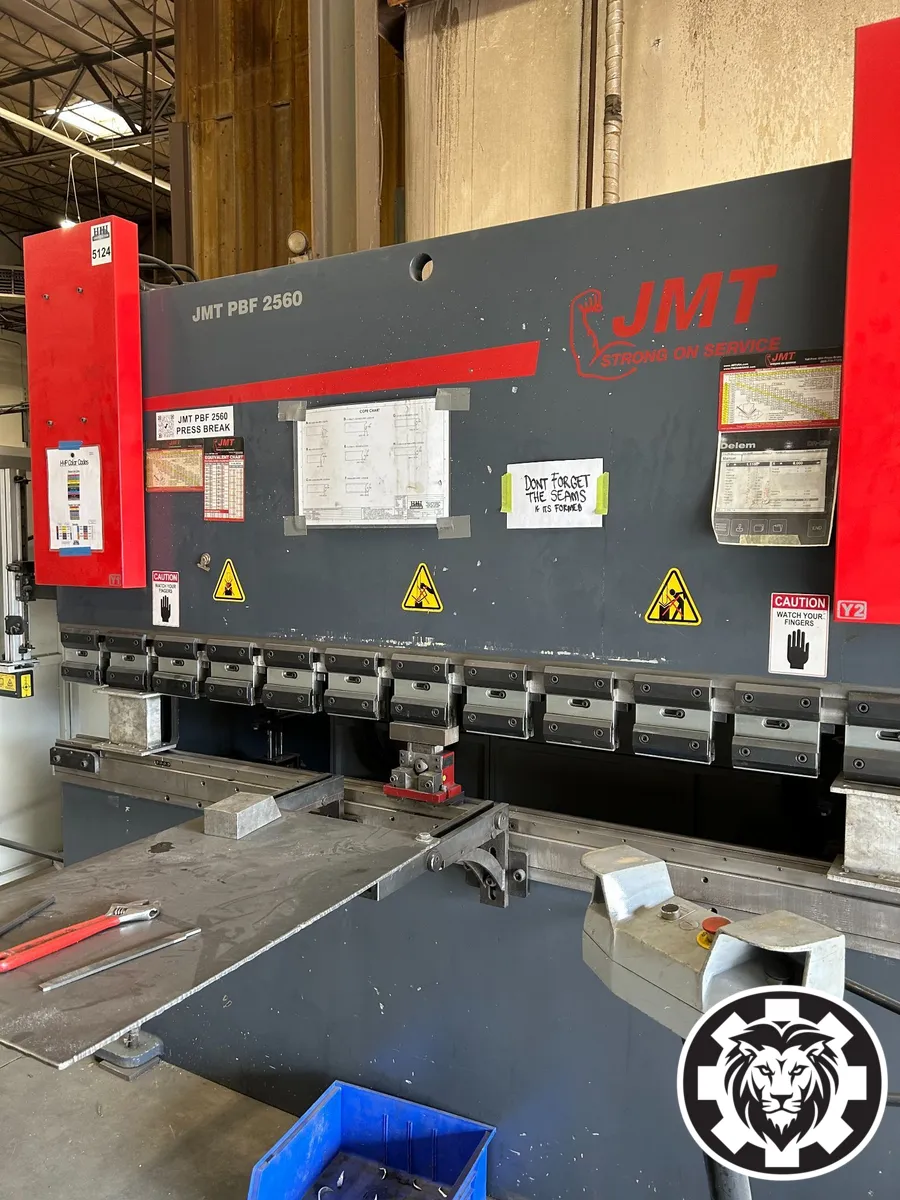 JMT PBF 2560 Press Brake, 2013 model, used condition. Offers 66-ton capacity with hydraulic operation and an 8.3' overall length. Ideal for precise bending tasks in manufacturing environments.